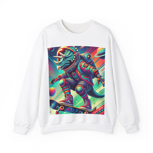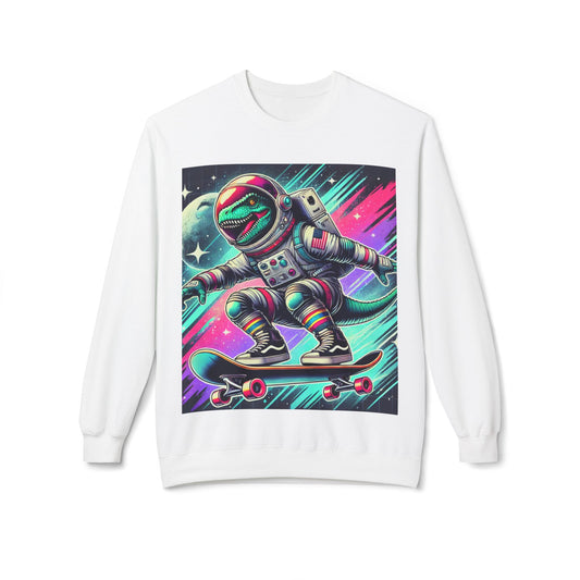 Space Dinosaur On A Skateboard, Unisex Midweight Softstyle Fleece Crewneck Sweatshirt